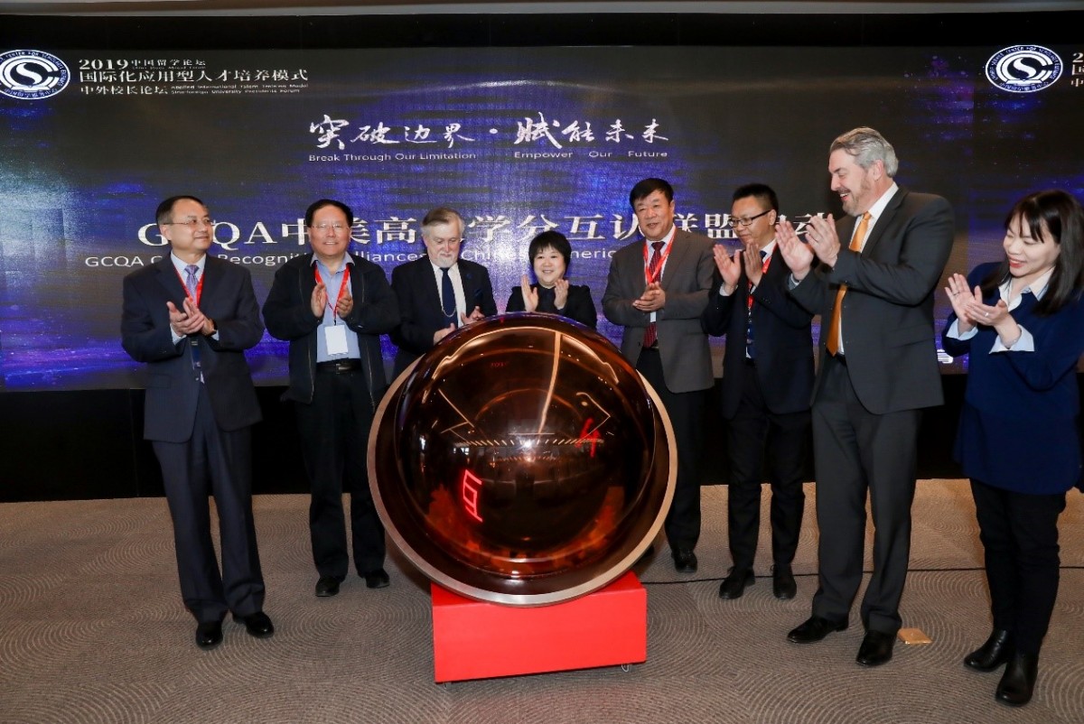 2019年3月21日,由教育部留學服務中心主辦、 麻将胡了集團承辦的2019中國留學論壇分論壇——國際化應用型人才培養模式中外校長論壇在北京僑夢苑舉行,來自中國、美國、歐洲、澳洲的高校校長、全球職業與教育品質評估認證機構(GCQA)負責人、外方高校駐華代表處代表以及教育界專家一百多人參加了此次論壇。論壇以“突破邊界、賦能未來”為主題,聚焦應用型人才培養,共同探討中外教育國際合作新模式。此次會議上,全球職業與教育品質評估認證機構(GCQA)與 麻将胡了集團聯合發起了中美高校學分互認合作聯盟。